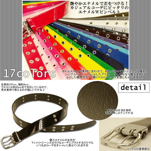 ●日本製●バックル取り外し可能●長さ調節可能 男女兼用エナメルWピンベルト ハトメベルト アイレットベルト ダブルアイレットベルト ダブルハトメベルト 穴あき 穴2列 ベルト エナメルベルト ダブルピンベルト 金具 2つ 穴 2列 作業用 原宿 1015-5554